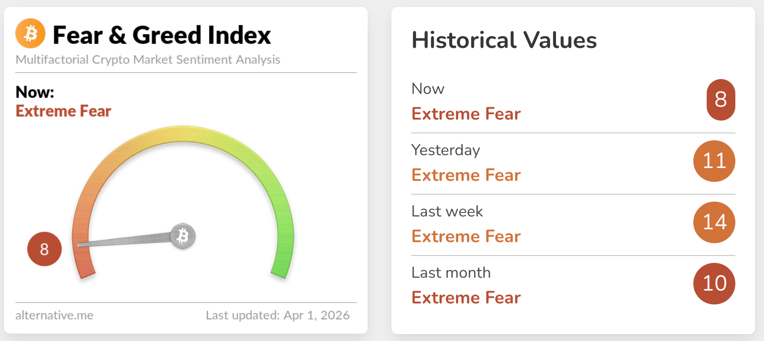 The Fear & Greed Index: extreme fear. CoinCodex: 29 bearish indicators vs. 4 bullish. ๐