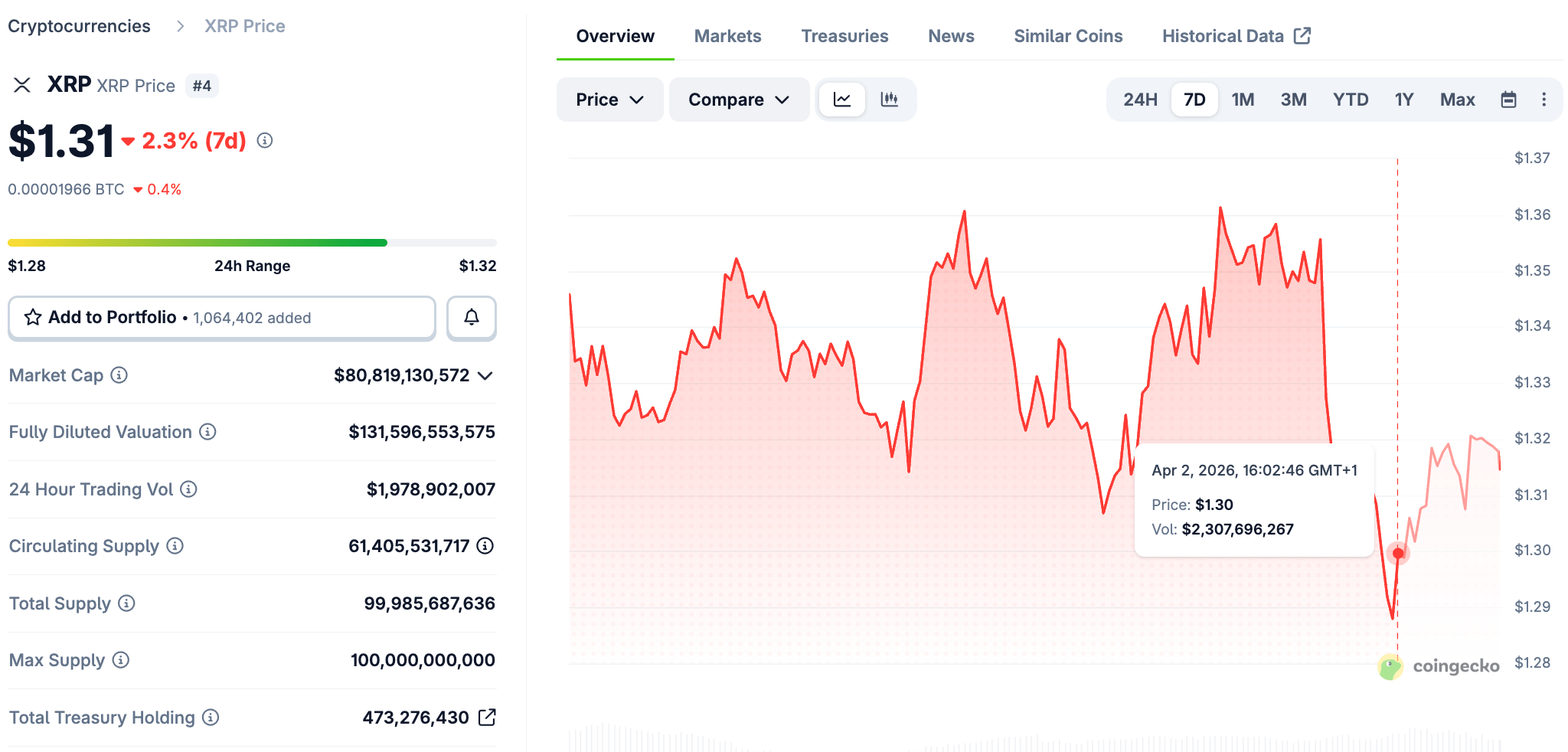 XRP is currently sitting at $1.31. ๐ It hit an all-time high of $3.65 in July 2025. Then macro pressure hit, geopolitical chaos followed, and XRP bled back down to $1.16 at its worst โ before stabilizing where it is now.