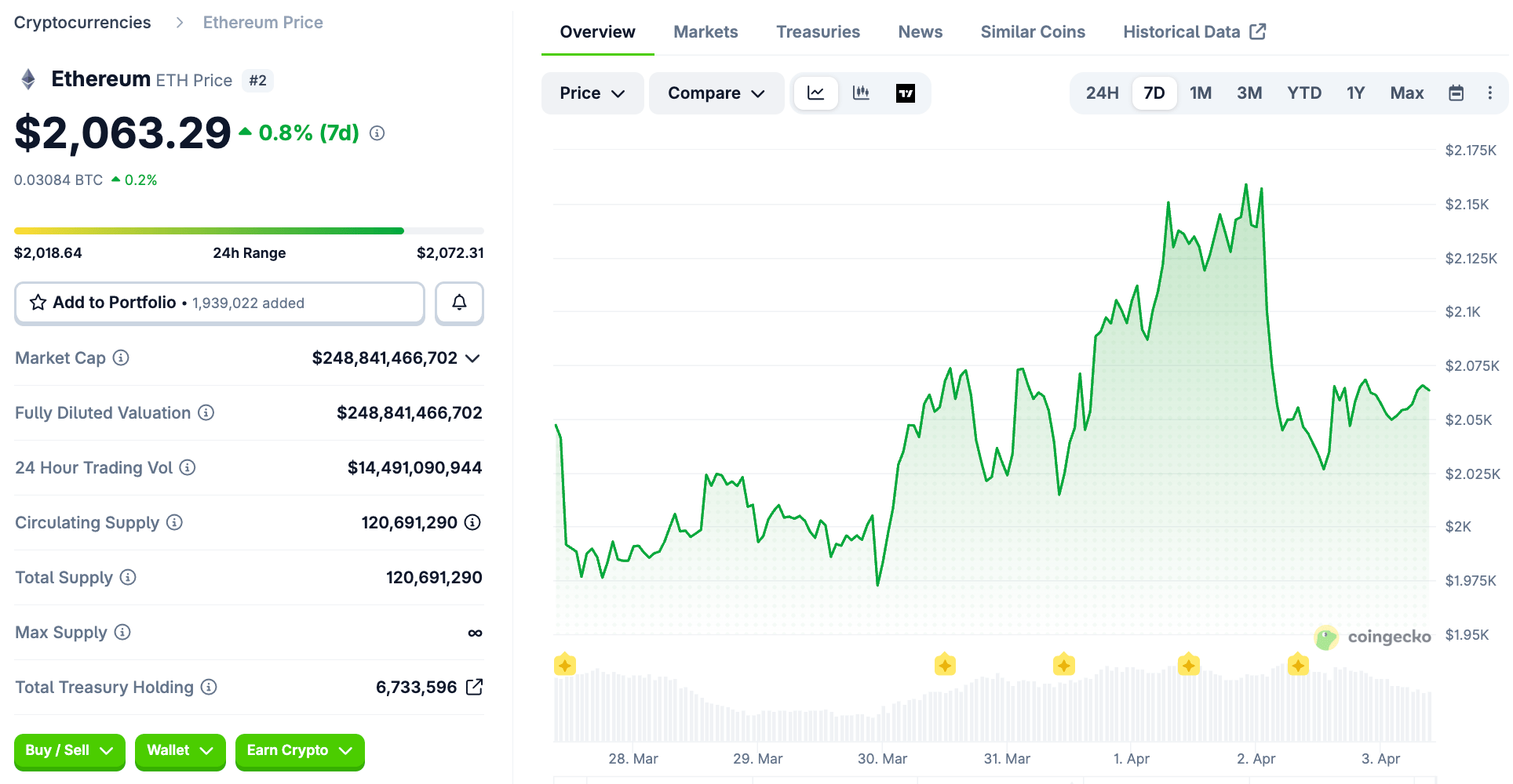ETH is at $2,063.29. Down 58% from its ATH. Two major upgrades are coming this year. The math is interesting.
